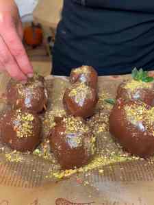 - Sprinkle with pistachios. You can cool down in the fridge or freezer until the chocolate fully hardens