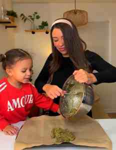 - in a bowl, mix together the toasted kataifi, pistachio butter, and tahini