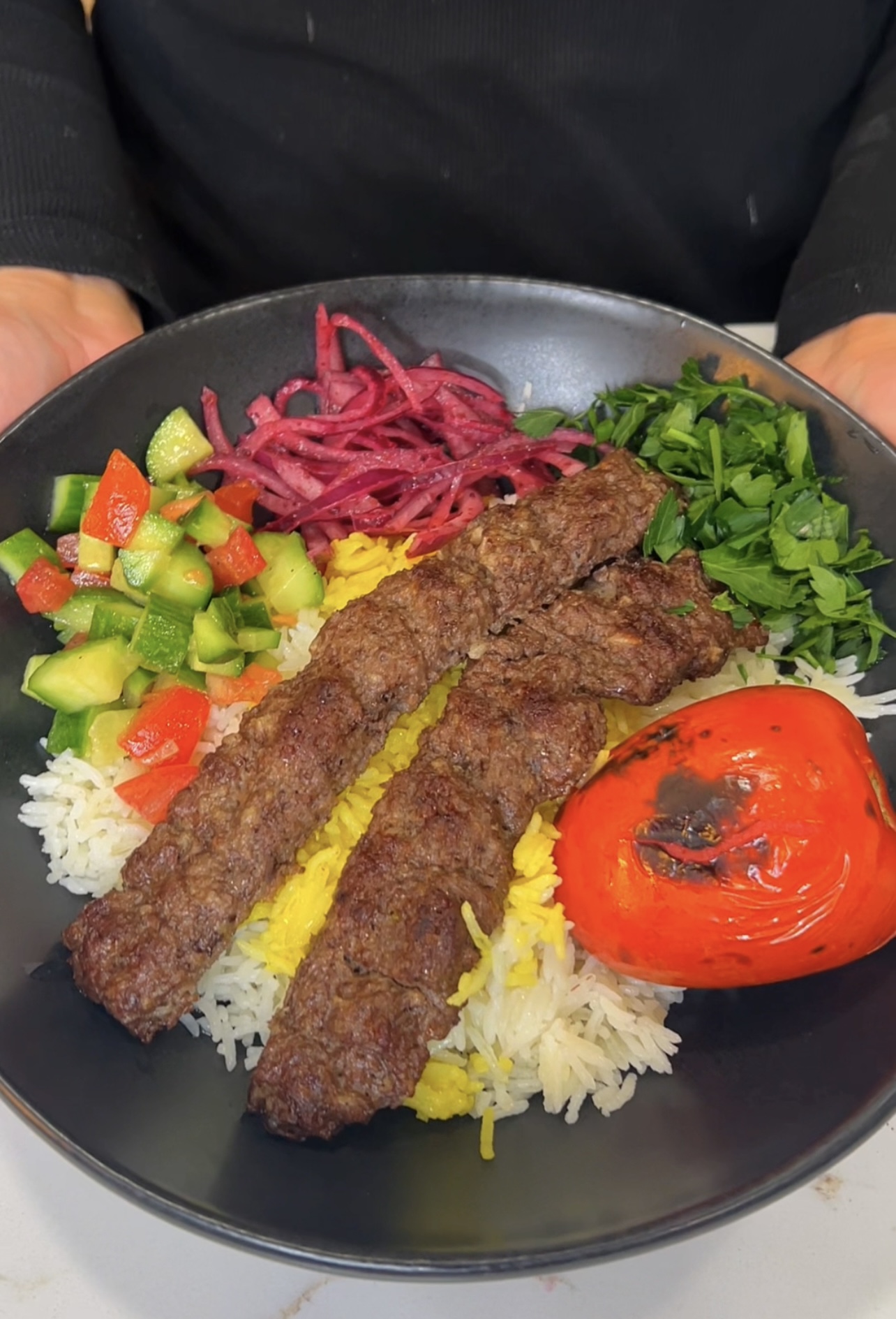 This kebab plate naturally checks all of those boxes. The beef provides protein that supports muscle repair and helps keep hunger away longer. The rice offers steady carbohydrates that restore energy levels after fasting. The salads add hydration and fiber, which are especially important after a long day without food or water. Even the small details, like lemon and sumac, add brightness and help balance the richness of the dish.