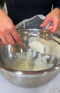 Grate the onion then squeeze with a cloth to get rid of any liquid