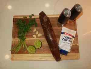 - In a food processor, blend together the sour cream, cilantro, garlic cloves, lime juice, and salt & pepper